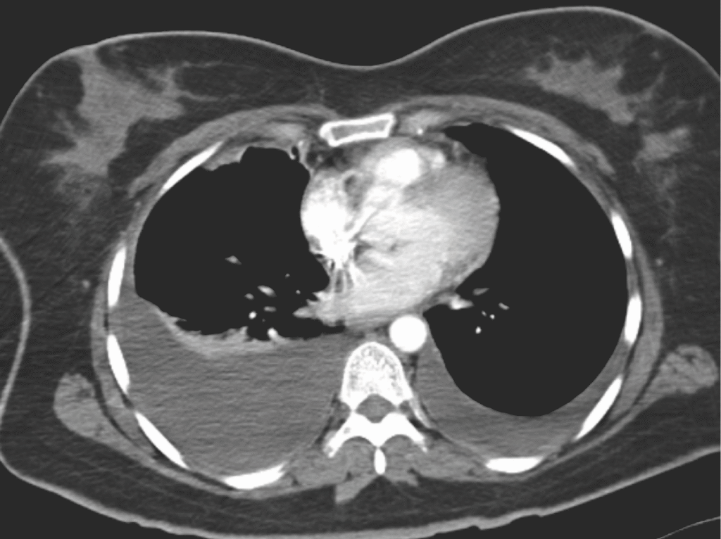 - Exsudat: Pneumonie, Tuberkulose, Malignome (Bronchial-, Mamma-Ca), Lungenembolie